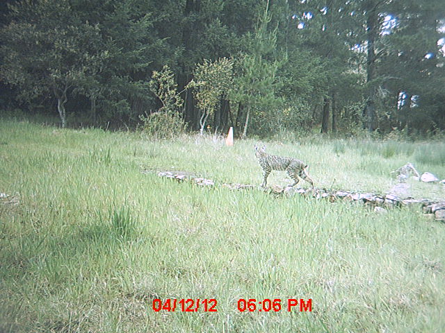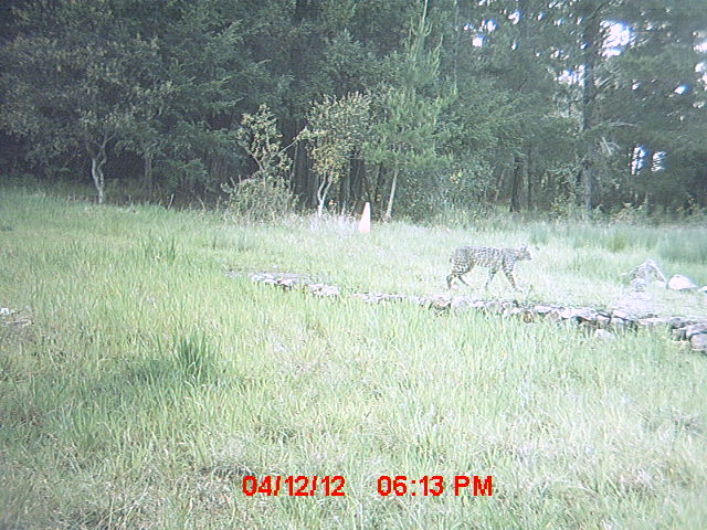 My neighbor has a $50 camera (hence the quality) with a motion sensor in her field just off C.V.Rd. This animal tripped it on the date and time in the photos. It is most decidedly a bobcat, and a rather large and beautiful one at that.